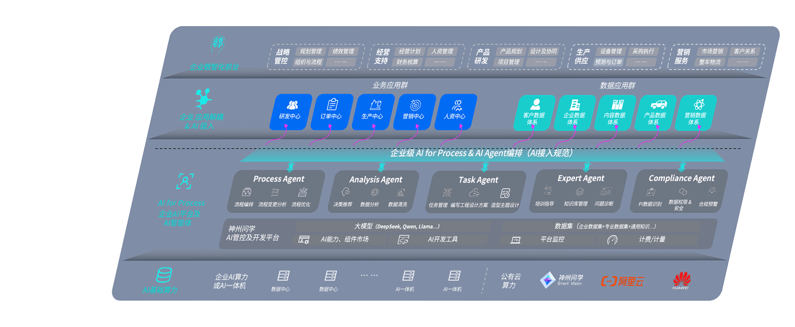 端到端的一站式AI工作空间深度融合了从企业战略规划到日常经营的全流程业务板块,,定向解决车企内部领域多、、部门多、、、链条长、、场景碎片化等难题,,支持车企快速构建以AI为核心的生产力写作体系,,实现任务执行与AI能力的无缝集成与交互